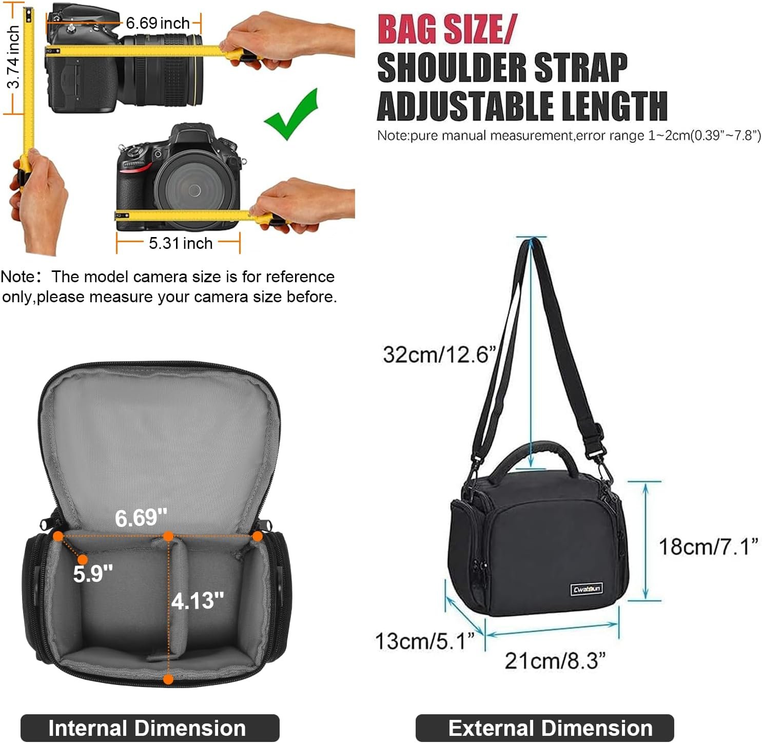 Cwatcun Camera Bag, Single Shoulder Camera Bag, Sling Crossbody Compact Camera Bag Bag Compatible for Canon Nikon Sony SLR DSLR Mirrorless Cameras and Lenses Waterproof Black, black, camera bags