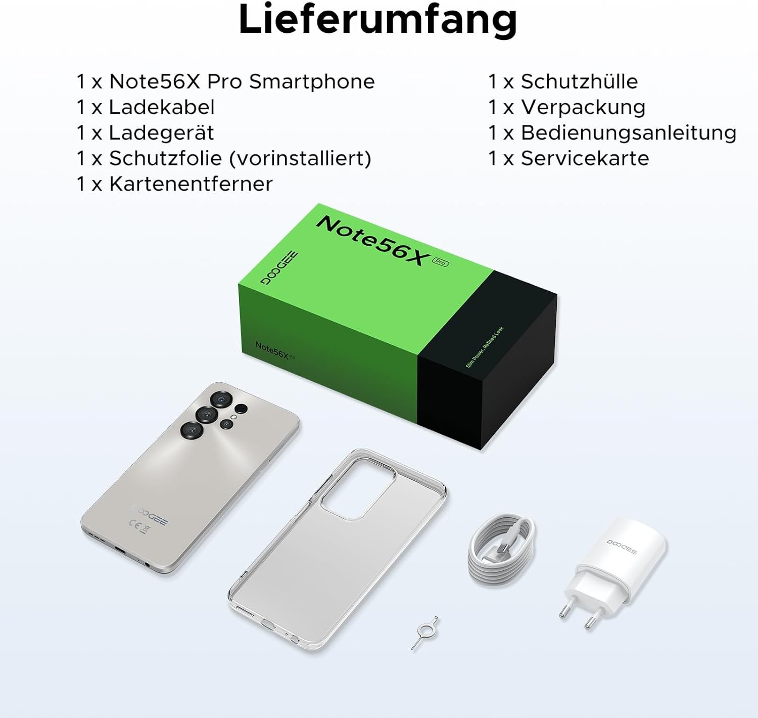 13MP and 8MP camera + face recognition + fingerprint detection: The DOOGEE Note56X Pro Android smartphone has a 13MP main camera for clear and vivid photos as well as an 8MP front camera, perfect for selfies and video calls. Different shooting modes such as beauty mode, HDR, filter, mirror mode and night mode cover different needs. Face detection allows quick and secure access, and the side fingerprint sensor provides added convenience.