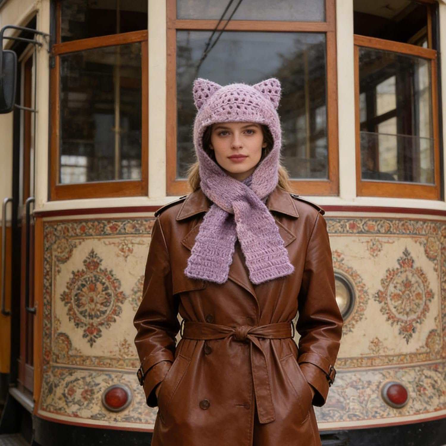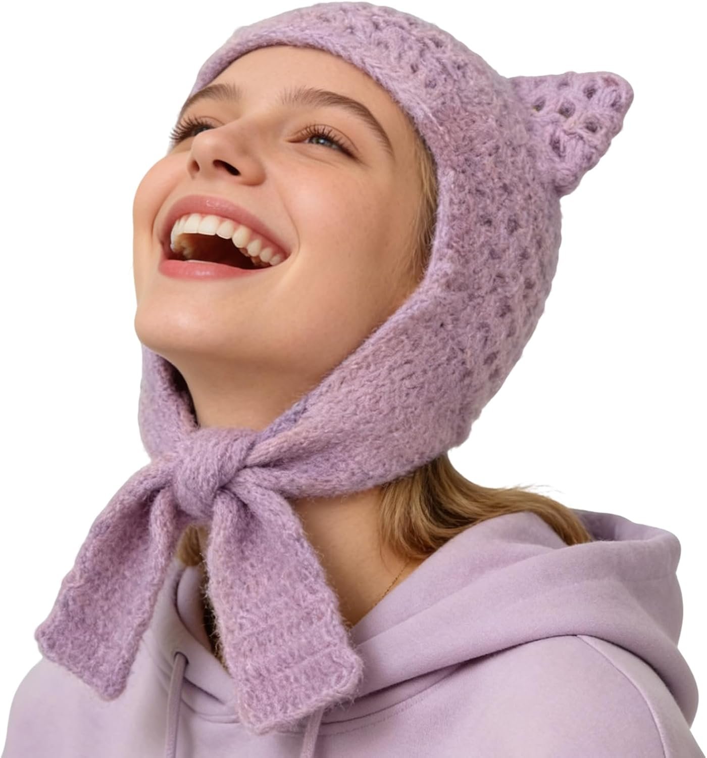 Feline Hood Wrap – Yarn Insulated Knit Cap Shawl, Cold Weather Apparel | Soft Protective Neck Hood Featuring Cute Ears for Travelers Shoppers Daily Commuting Outdoor Adventures