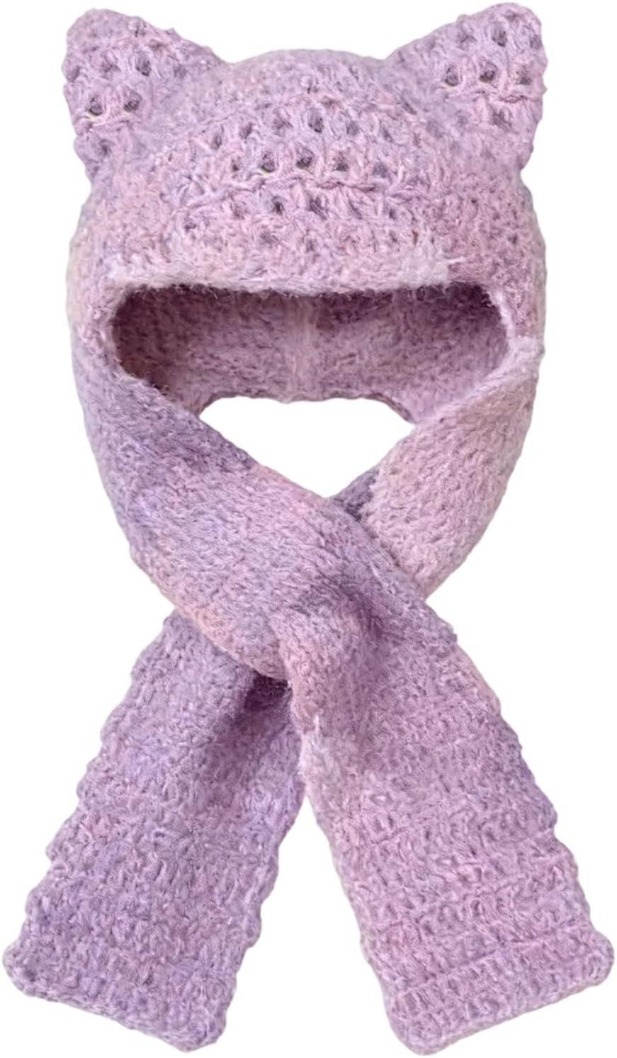 Hooded Scarf | Cat Ear Knitted Warm Headwear | Hooded Hat Scarf Wrap | for Sports Enthusiasts Skiers Snowboarders Hikers Runners Shoppers Travelers Daily Commuting Women Girls