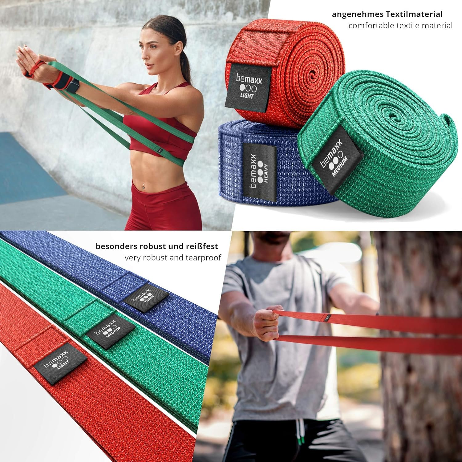 Our power tapes are also included in a fabric set + door: our skin-friendly textile bands are extra tear-resistant, do not slip on the body and do not roll up like conventional rubber bands. Thanks to the high-quality materials, they are also super durable and thus offer the necessary resistance for the long term. Washable at 30 degrees.