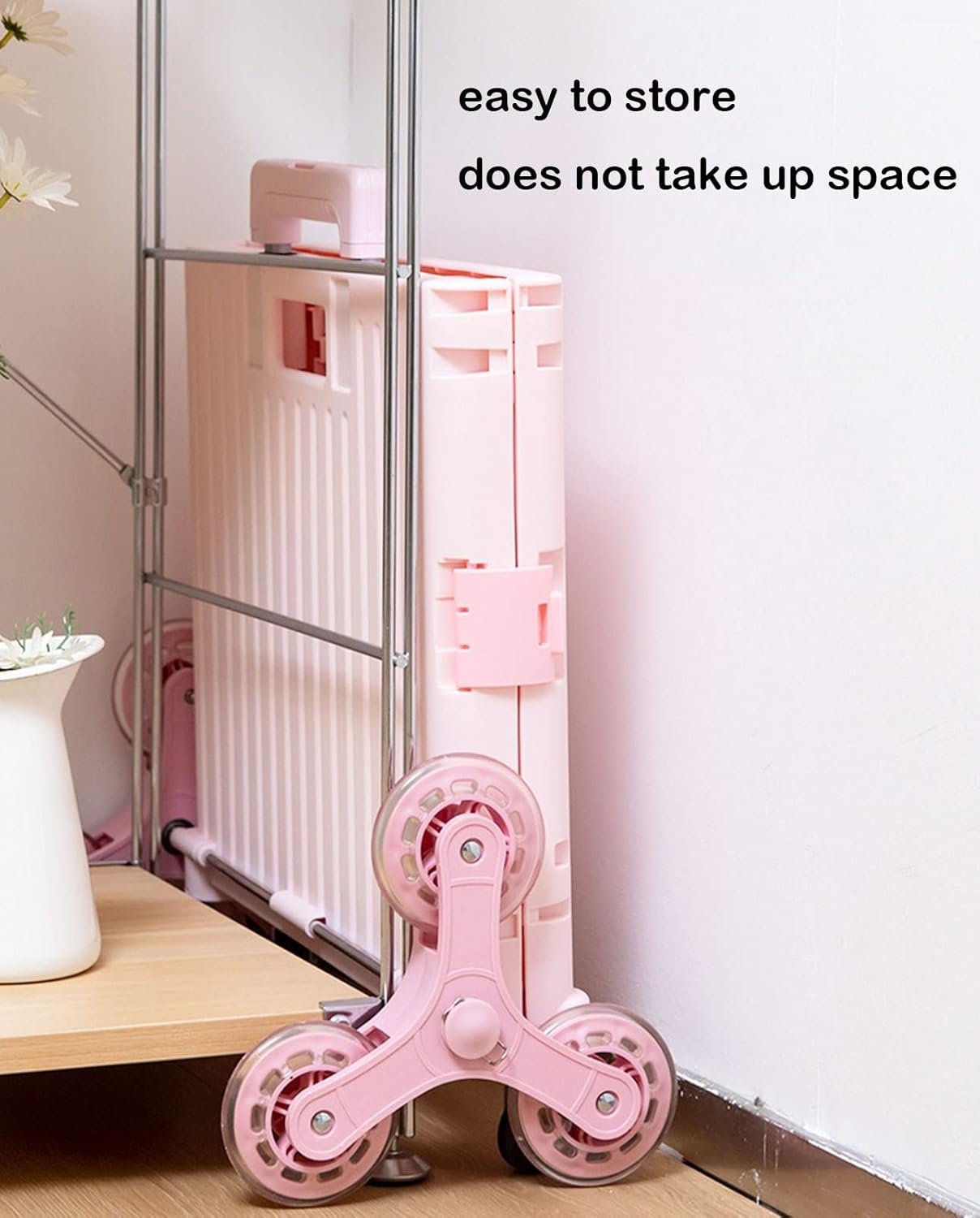 Effortless Stair Climber This stair climber glides smoothly up stairs and maneuvers easily on various surfaces such as dirt, grass and pavers. Its two swivel front wheels and three rear wheels provide improved stability and control, making it ideal for transporting heavy loads. Perfect for home, garden or outdoor, it simplifies your lifting tasks.