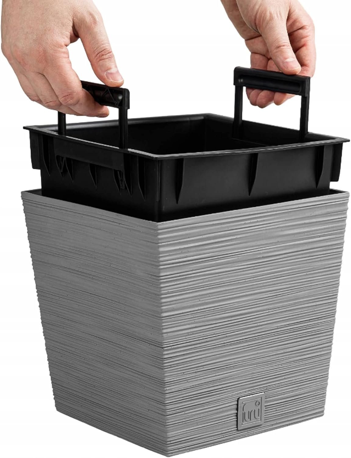 FURU Collection Cement-Coloured Planter with Container, 29.5 x 29.5 x 29 cm, Capacity 14 Litres