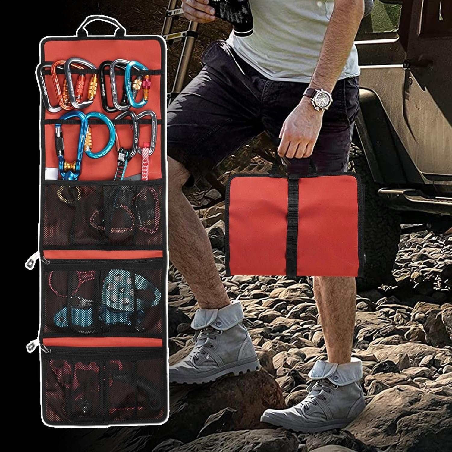 Efficient Tool Storage & Organization: Featuring multiple compartments, this tool organizer bag helps you neatly store and organize your gear. Each item has its designated space, making it easy to find and access your tools quickly when needed, whether you’re at a campsite or on a trail