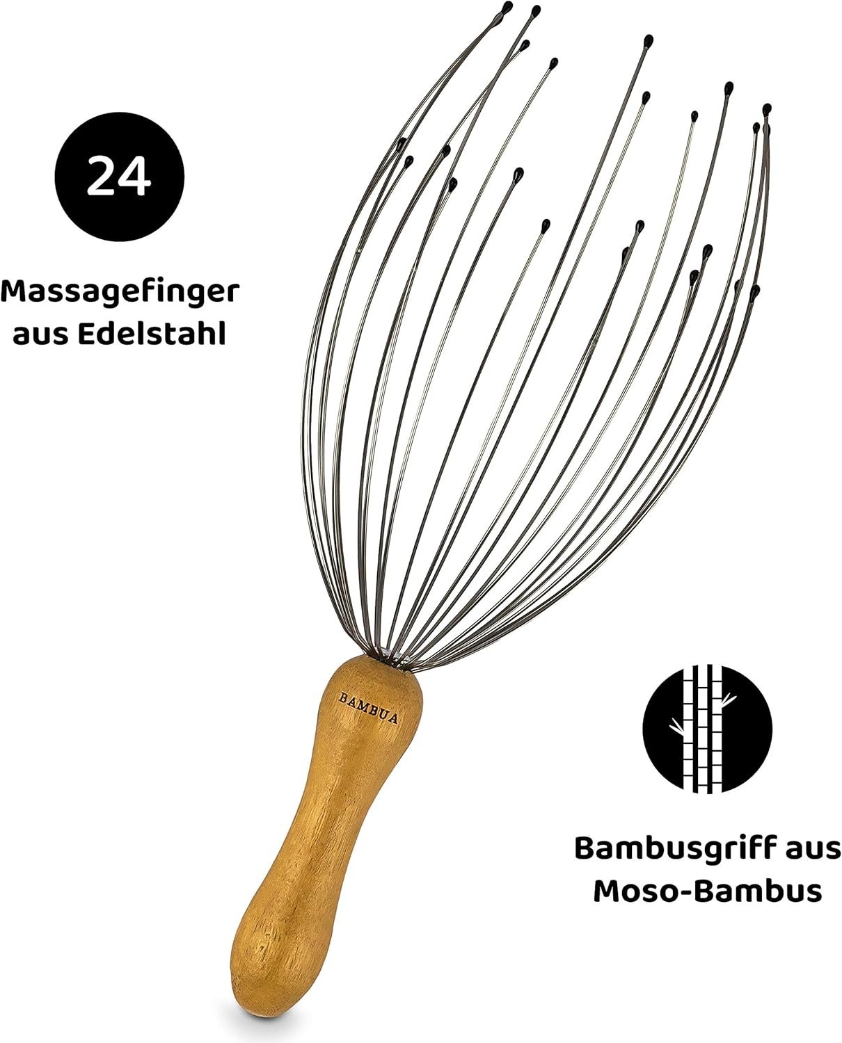 Head massage spider with 24 fingers – bamboo handle – made from moso bamboo – premium head massager – sustainable relaxation