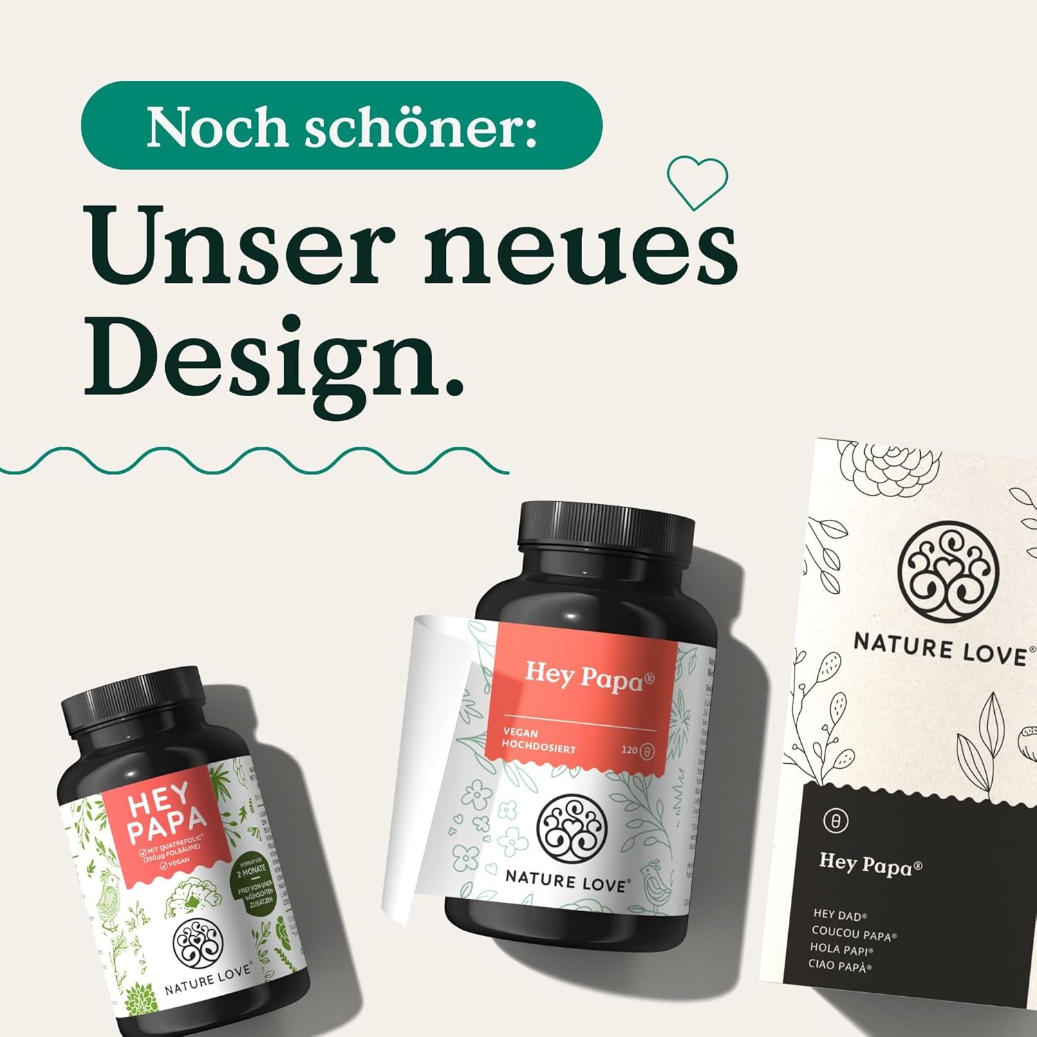 Hey Papa – 120 Capsules – 12 Ingredients: Folic Acid, Maca, Selenium, Zinc, L-Arginine, L-Carnitine, Q10, Vitamin C, B6, B12, D3 and E – Vegan and Laboratory Tested