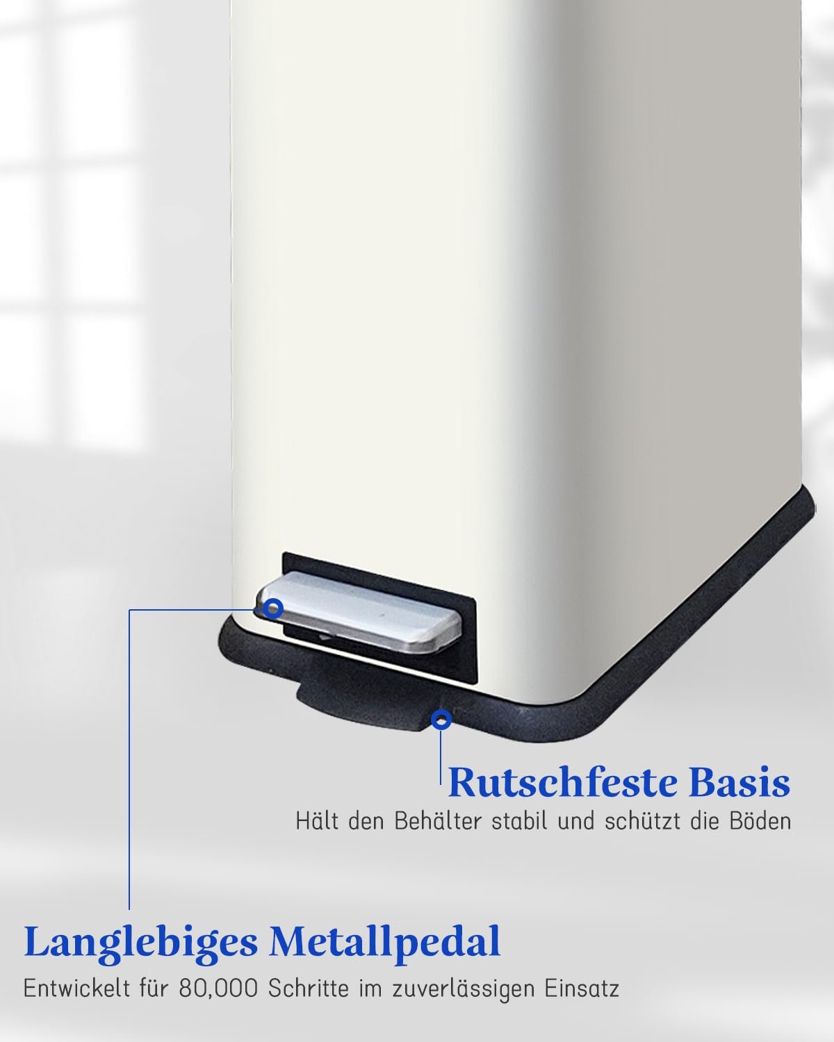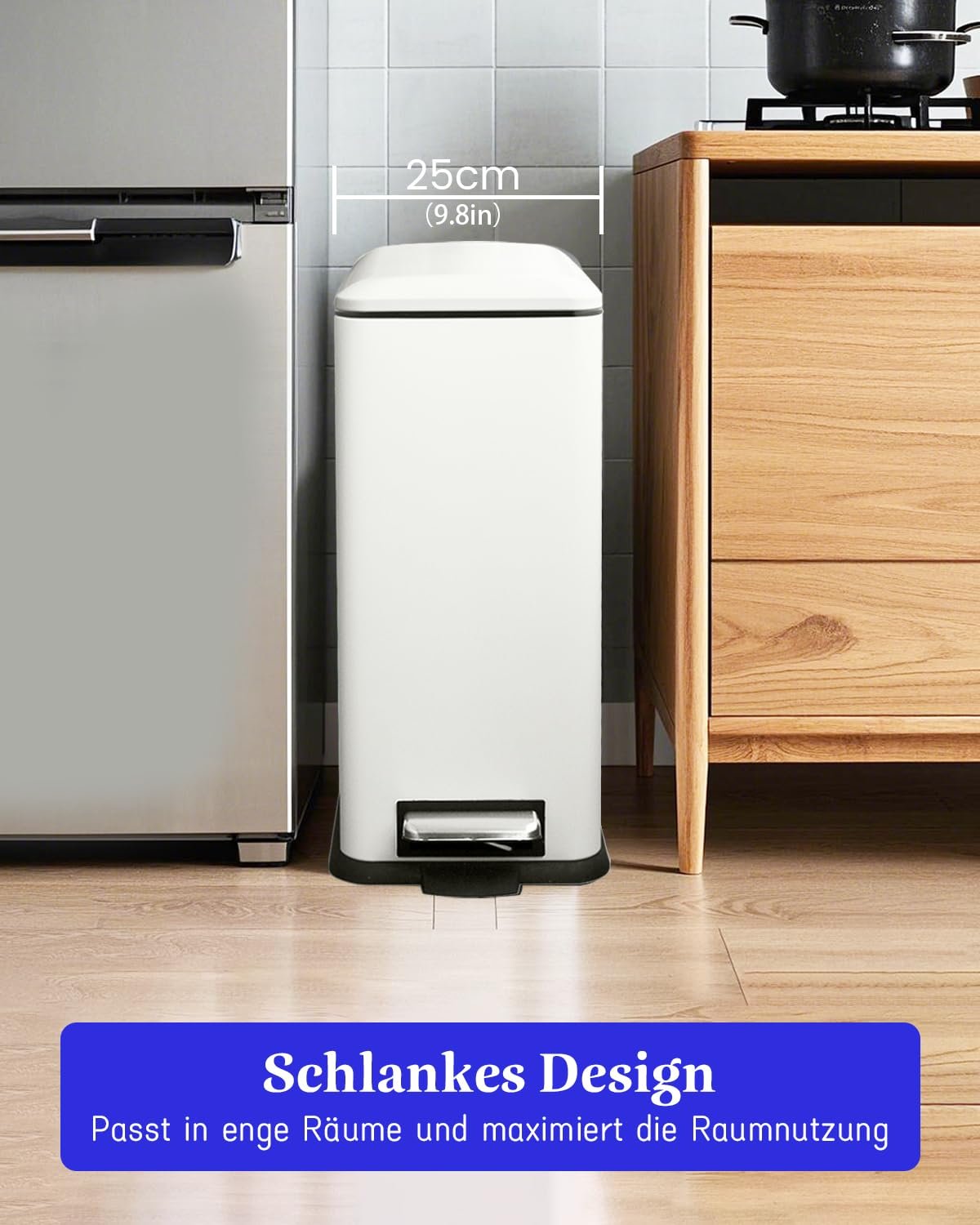 Space-saving & versatile: With the dimensions 46 x 25 x 55 cm, the 30 litre white bin fits easily under sinks, in tight corners or next to furniture. Ideal for kitchen, bathroom, living room and office!
