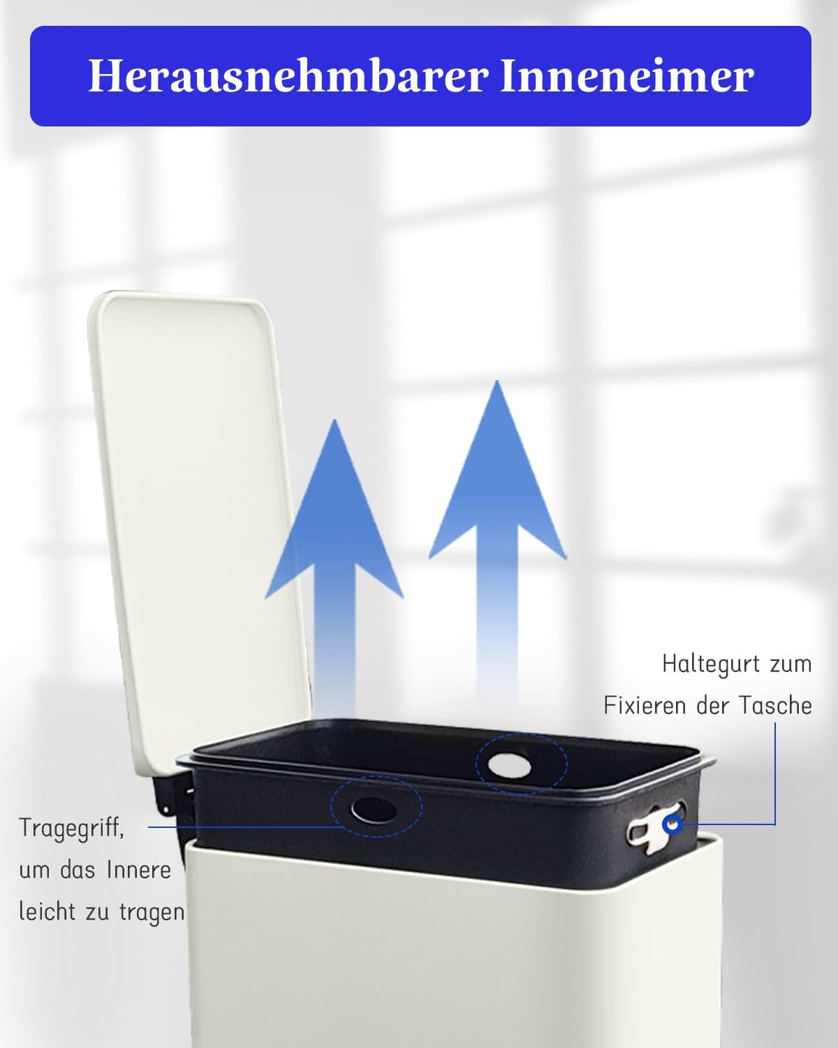 Removable inner bucket with handle: The inner and outer barrels of the bin can be separated, and the inner bucket has handle. You can easily lift the inner bucket, tip out the rubbish and rinse quickly if necessary.