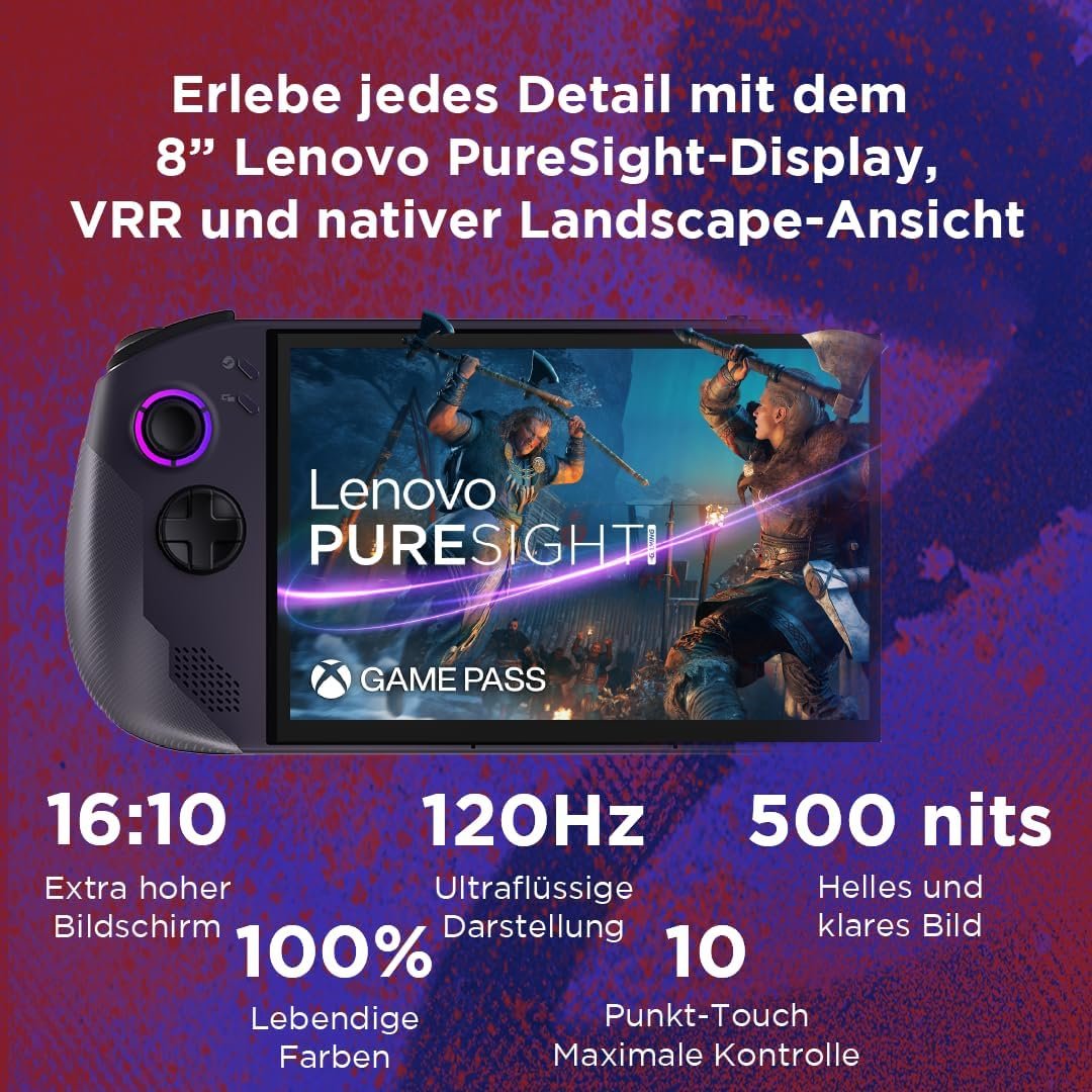 Every gaming detail at a glance: The 8-inch Lenovo PureSight display offers 37% more screen space for an even more immersive gaming experience.