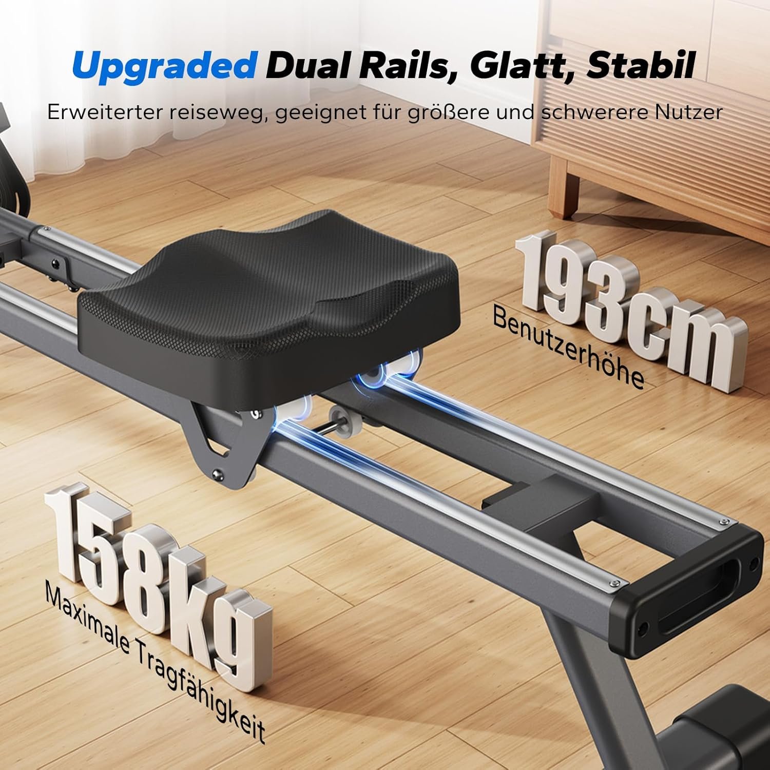 MERACH Rowing Machine for Home, 16 Resistance Levels, Quiet Magnetic Rowing Machine, Connected via App, Improved Double Rails for More Stability, Easy Assembly