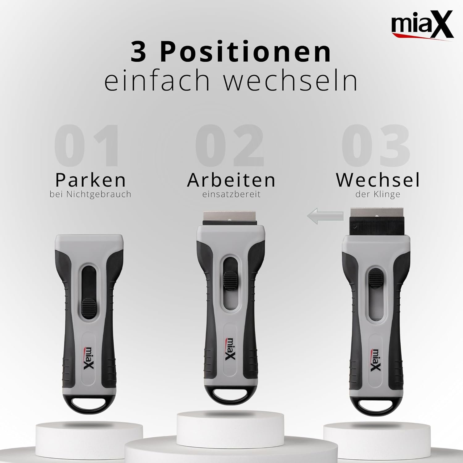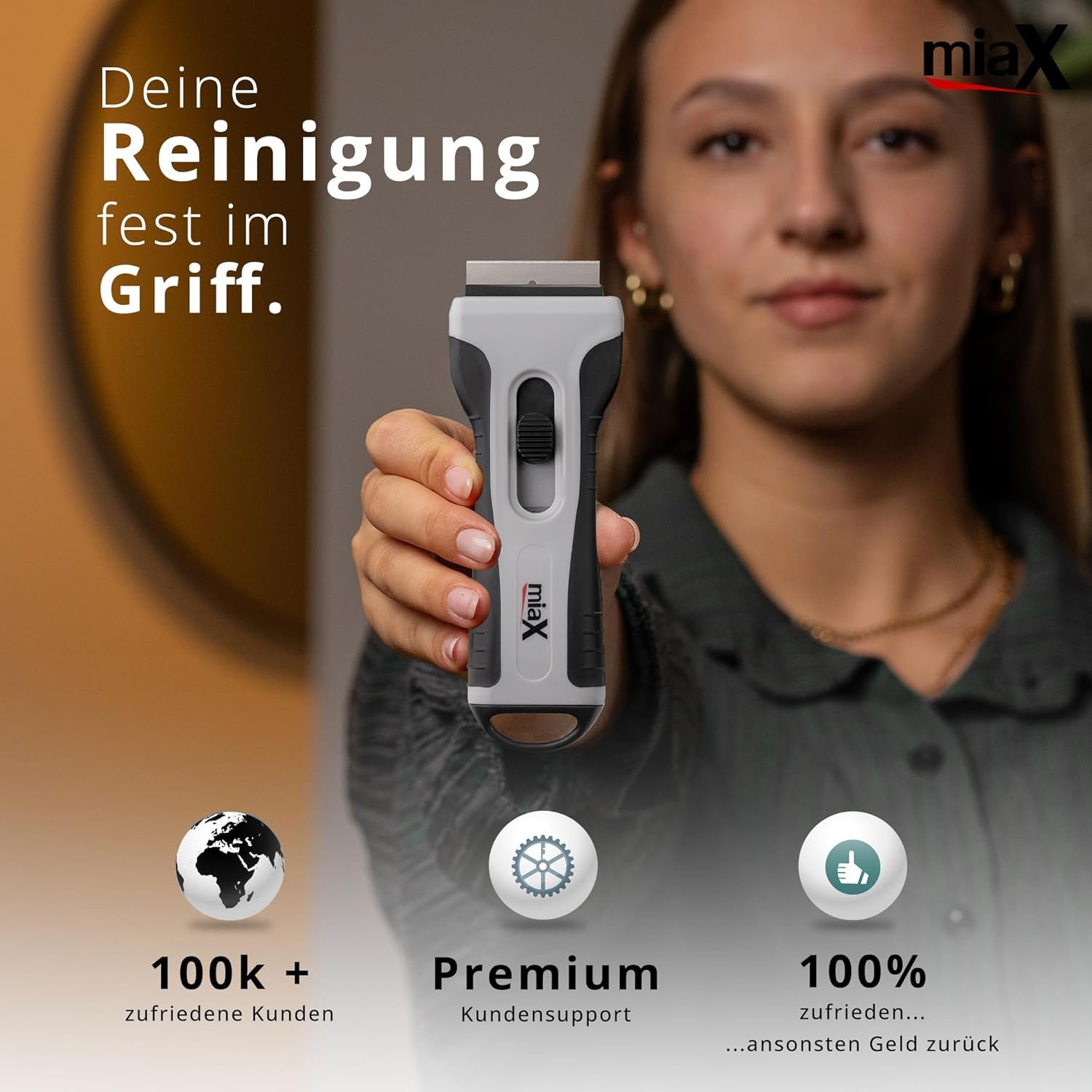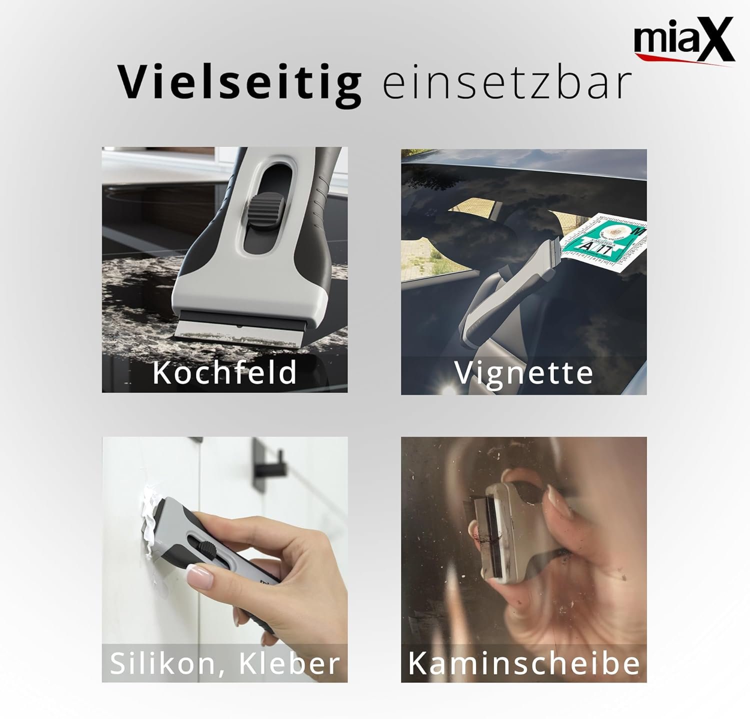 miaX Professional Ceramic Hob Scraper – Your Reliable Scraper For Kitchen and Household – Sturdy Hob Scraper With Soft-Touch Handle – Replacement Blades Integrated Into The Glass Scraper