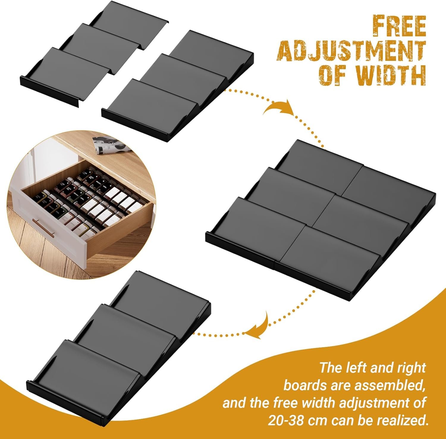 Product Features: The lid of this product has three openings and a locking mechanism. You can choose the desired opening according to the size or quantity of your spices. The shelf consists of two parts that can be used together or separately, making it suitable for all drawers.