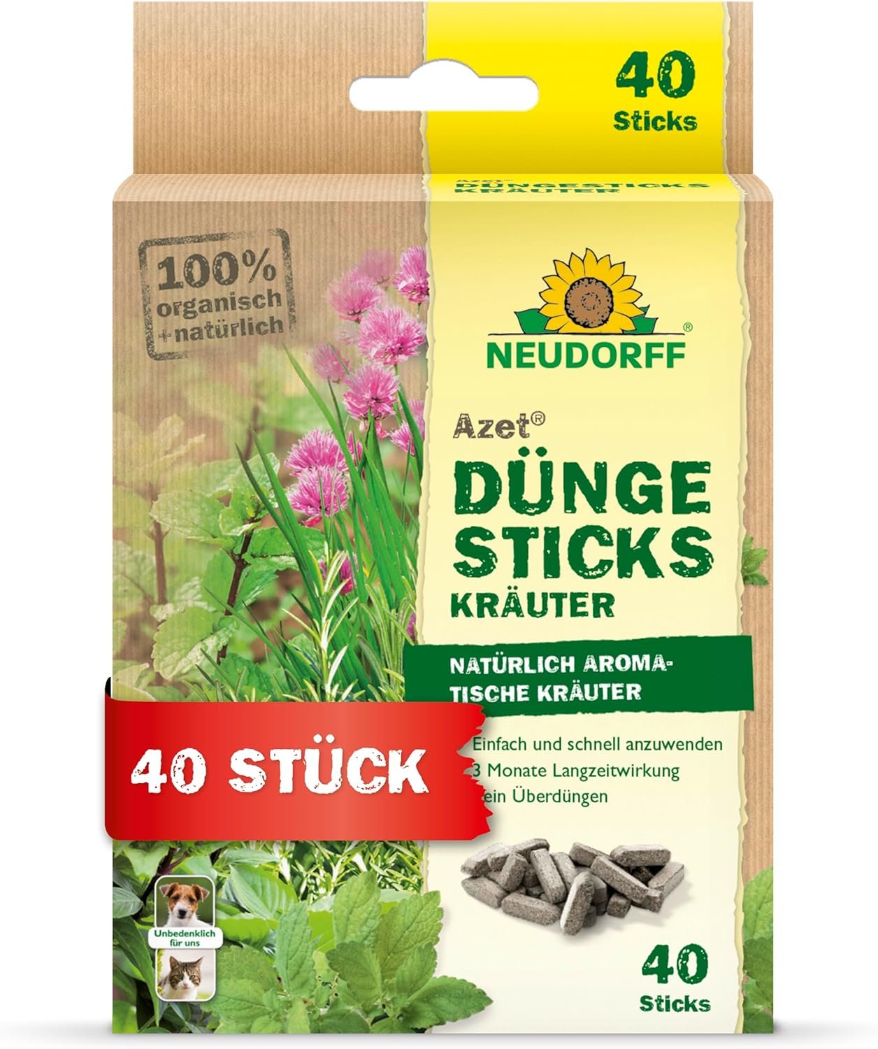 Neudorff Azet Fertiliser Sticks for Herbs – Organic Herb Fertiliser Provides Strong Growth and Aromatic Herbs with 2 Months Long-Term Effect, Pack of 40
