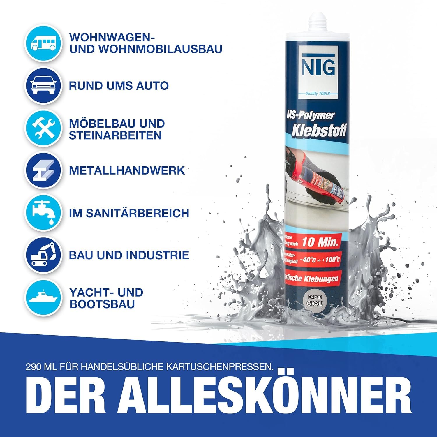 NTG Vinyltrimethoxysilane adhesive, 290 ml, construction adhesive, sealant for airline rails, made in Germany, UV-resistant, all-purpose adhesive, mounting adhesive, water adhesive, body adhesive,