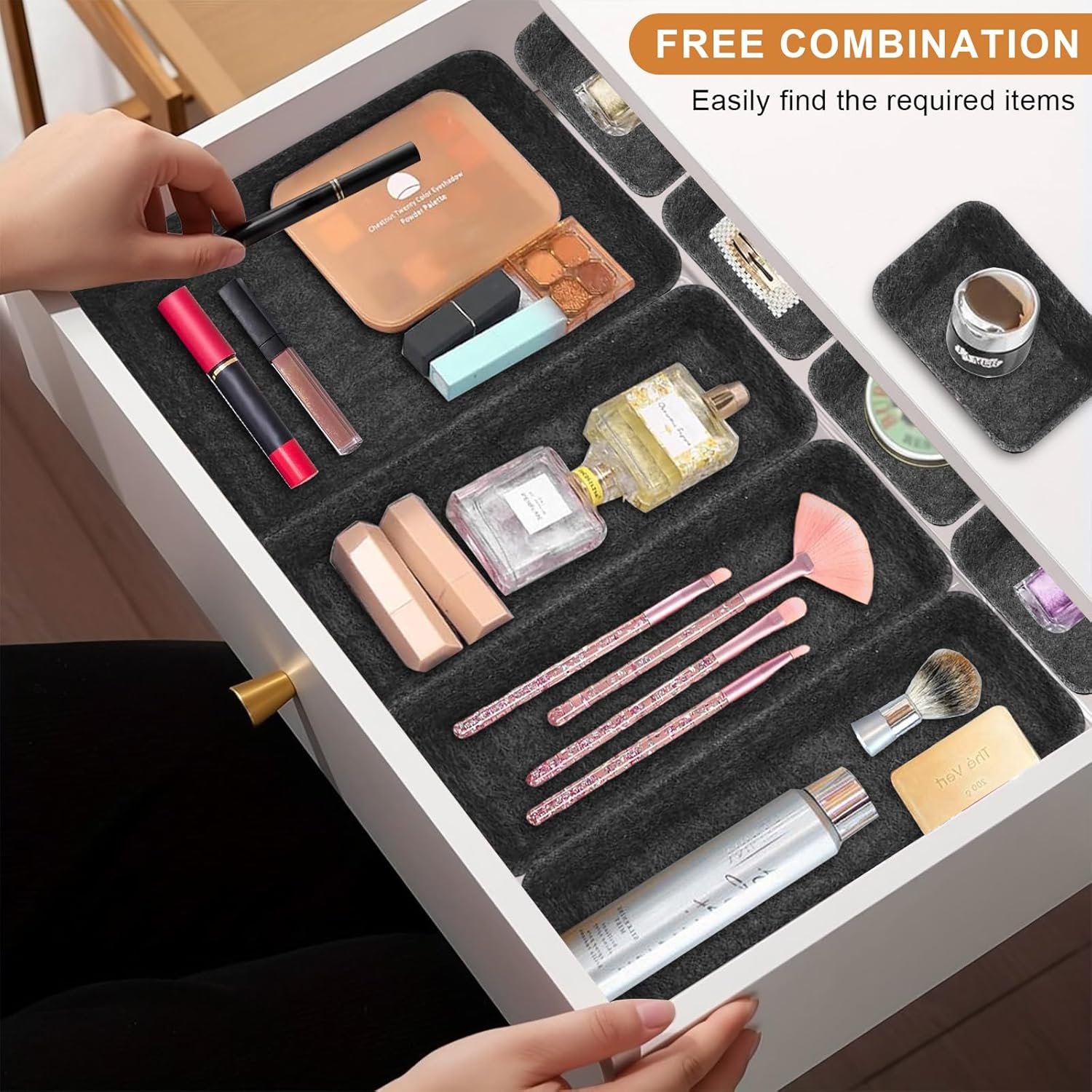 Pack of 10 Felt Drawer Organiser, Stackable Organiser Drawer, Organiser System, Drawer, Separate Drawer Insert for Dressing Table, Desk, Bedside Table, Wardrobe