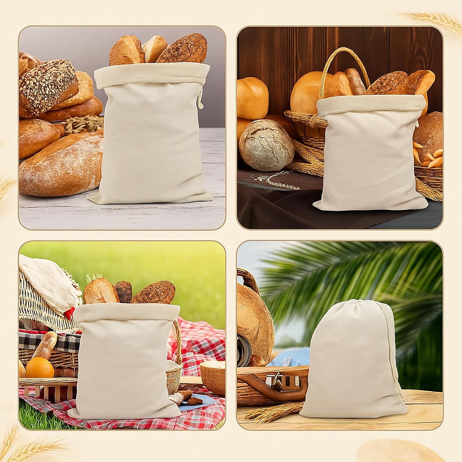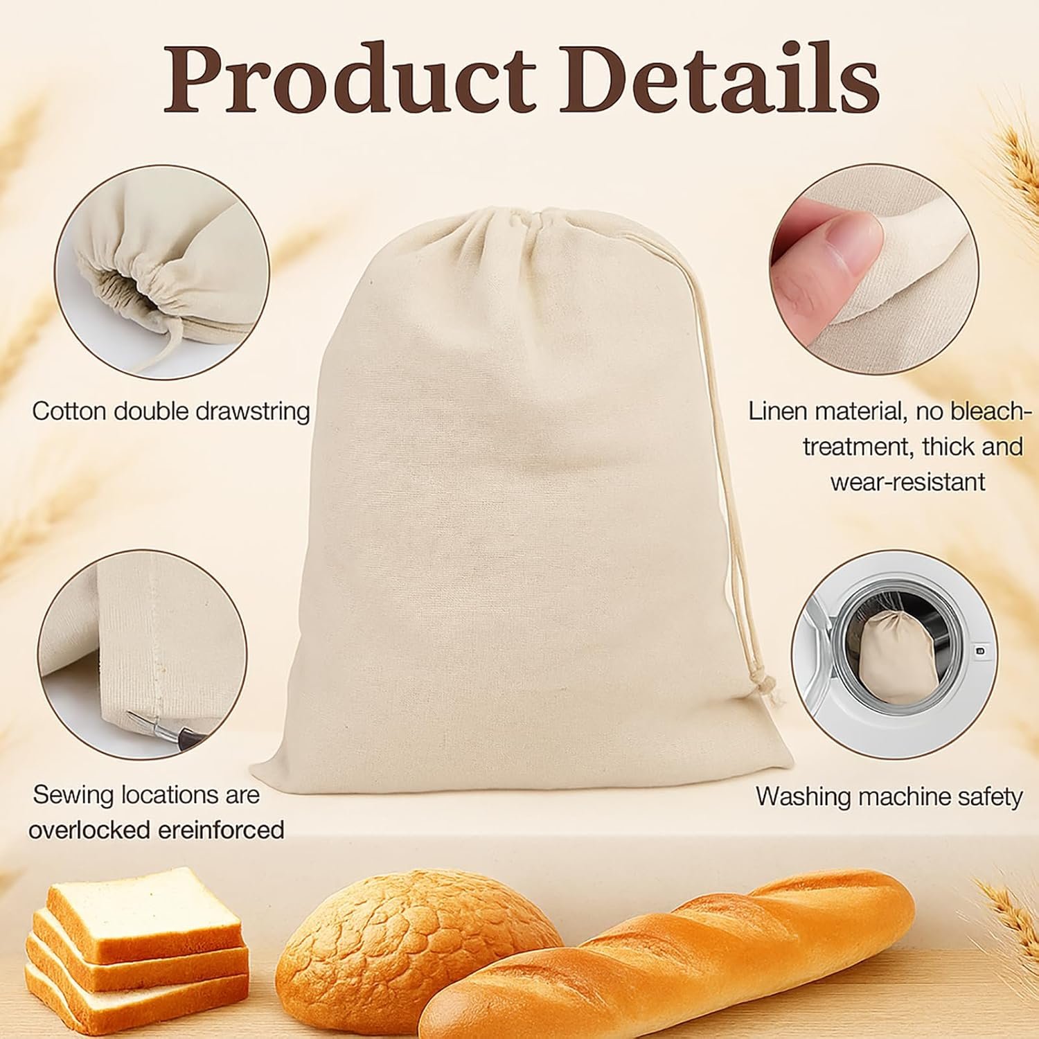 Box contents: each set contains 4 linen bread bags 30 x 40 cm, suitable for all types of bread and baked goods. Each bag has a strong drawstring that gives you a long lasting experience. The linen bread bag set not only meets the daily needs of the family, but also responds flexibly to different storage scenarios