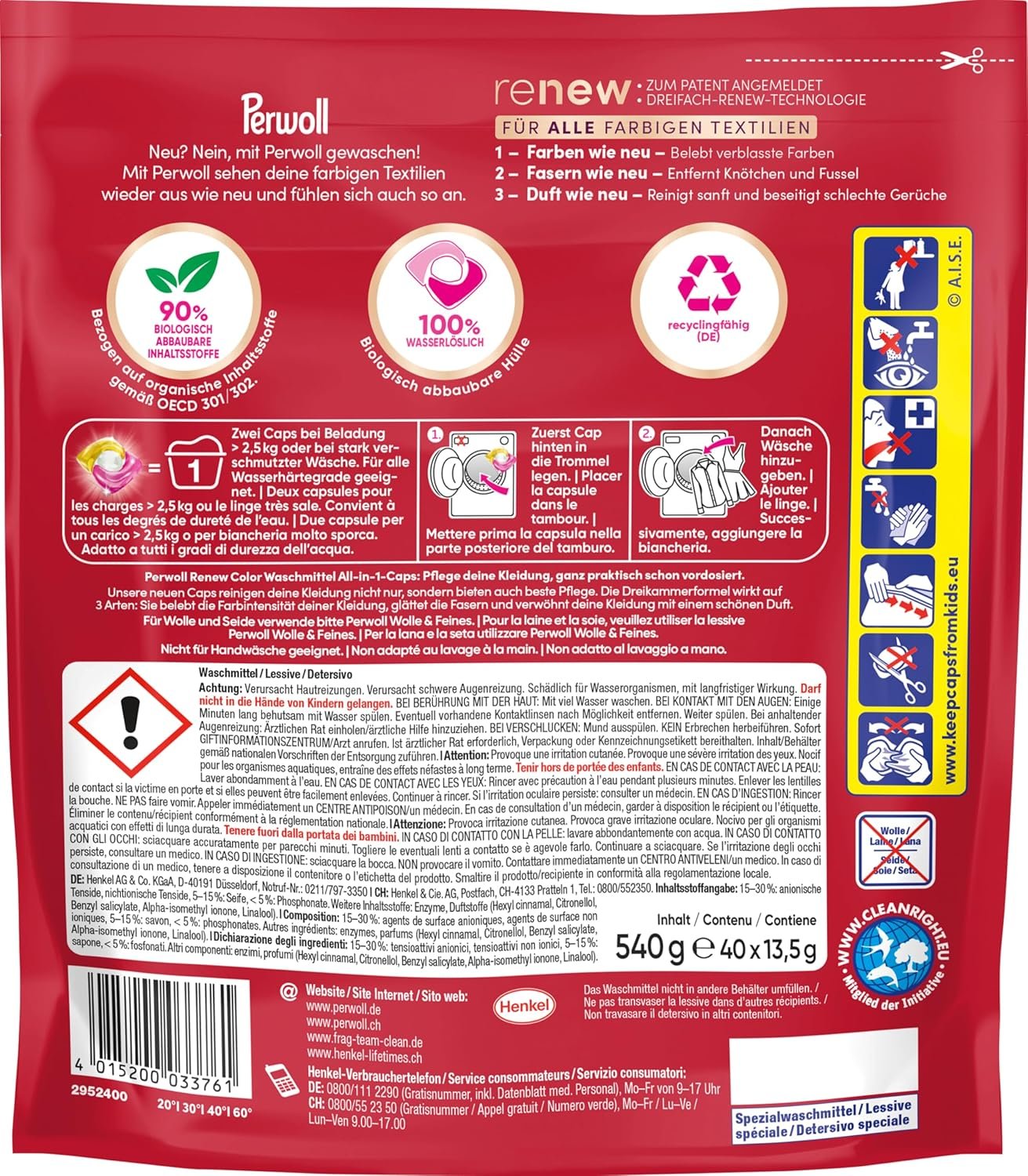 Perwoll Renew Caps Colour Detergent 80 (2 x 40 Washes), All-in-1 Detergent Caps Gently Clean and Renew Colours & Fibres, for All Coloured Textiles, with Triple Renew Technology