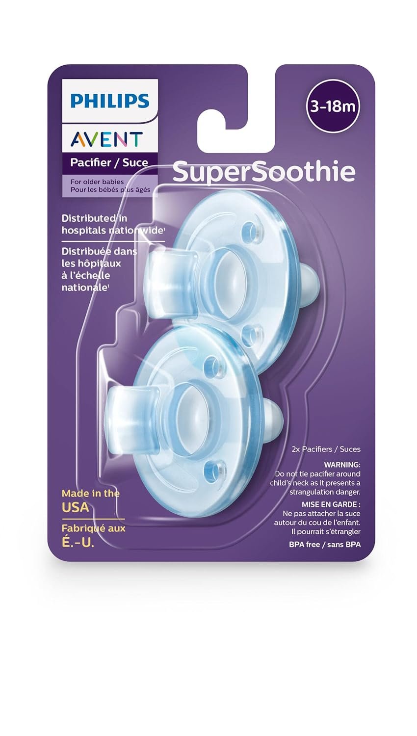 Philips AVENT SCF192/06 dummy helps to soothe and soothe babies. Designed for babies aged 3 months and up, the Soothie Pacifier is made of BPA free and latex free hospital grade silicone, for strength, comfort and durability. Its one-piece construction is specially shaped for the baby’s mouth and complies with the guidelines of the American Academy of Pediatrics. This pacifier is widely used in hospitals and is uniquely shaped to fit comfortably into small mouths to soothe and soothe without inhibiting normal oral development. Transparent, tasteless and odourless, the nipple is strong and smooth and resists sticky. Even after prolonged use, it will not discolour or deform. Soothie can be sterilised with one of the Philips AVENT sterilisers and is dishwasher safe. Soon all our Soothies will say Philips AVENT But for a while you may see some products saying “Soothie, Children’s Medical Ventures” and others that say “Philips Avent” on the market. Both are genuine, authentic Philips AVENT Soothies. The product meets CPSC safety requirements and the same high quality standards you expect from us.