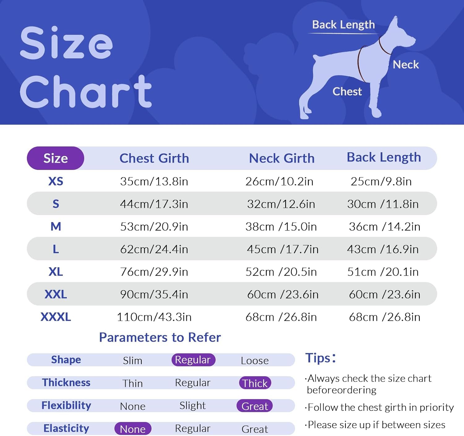 For all dog breeds: 7 sizes available: XS, S, M, L, XL, XXL, XXXL, suitable for small, medium and large dogs such as Teddy, Chihuahua, Poodle, Bulldog, Beagle, Schnauzer, Doberman, Labrador, Golden Retriever, etc. Please measure the size before placing the order.