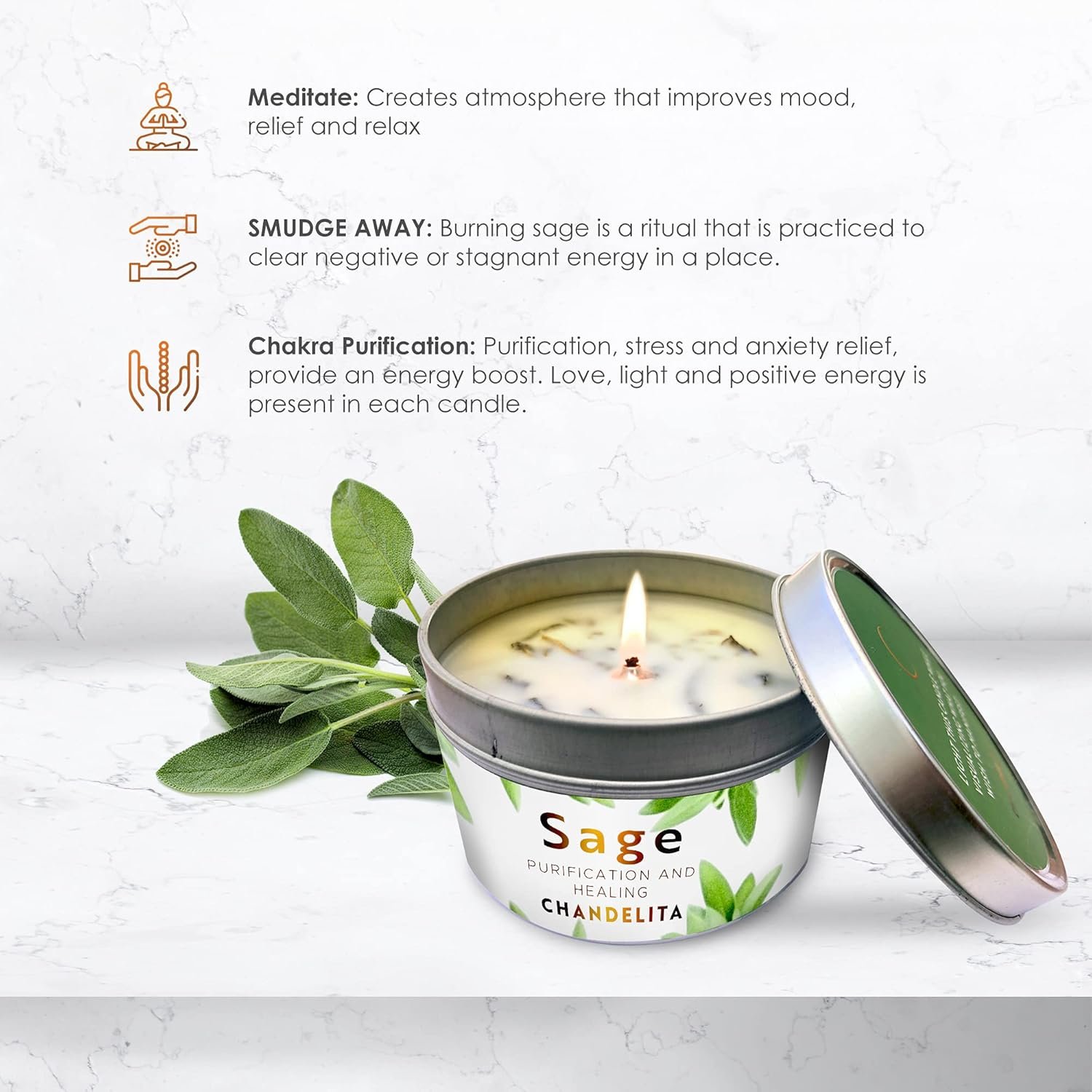 Pure Sage Aroma Candle for Home Blessing and Energy Sage Leaves with Soy Wax for Cleansing, Relaxing, Meditation and Healing Chakras (1 Unit)