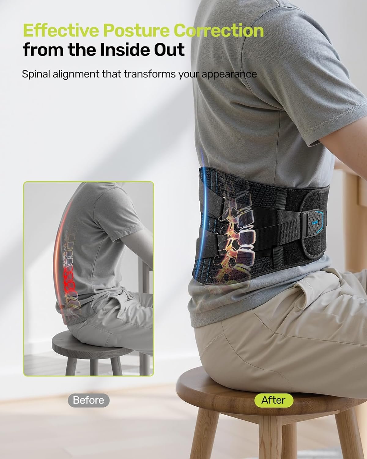 ERGONOMIC & STRONG SUPPORT Back supports for lower back pain mimic lumbar curvature for a snug fit. The back support is made of 1 flexible PP, 4 memory alloys and 2 spring strips for support; includes removable padding.