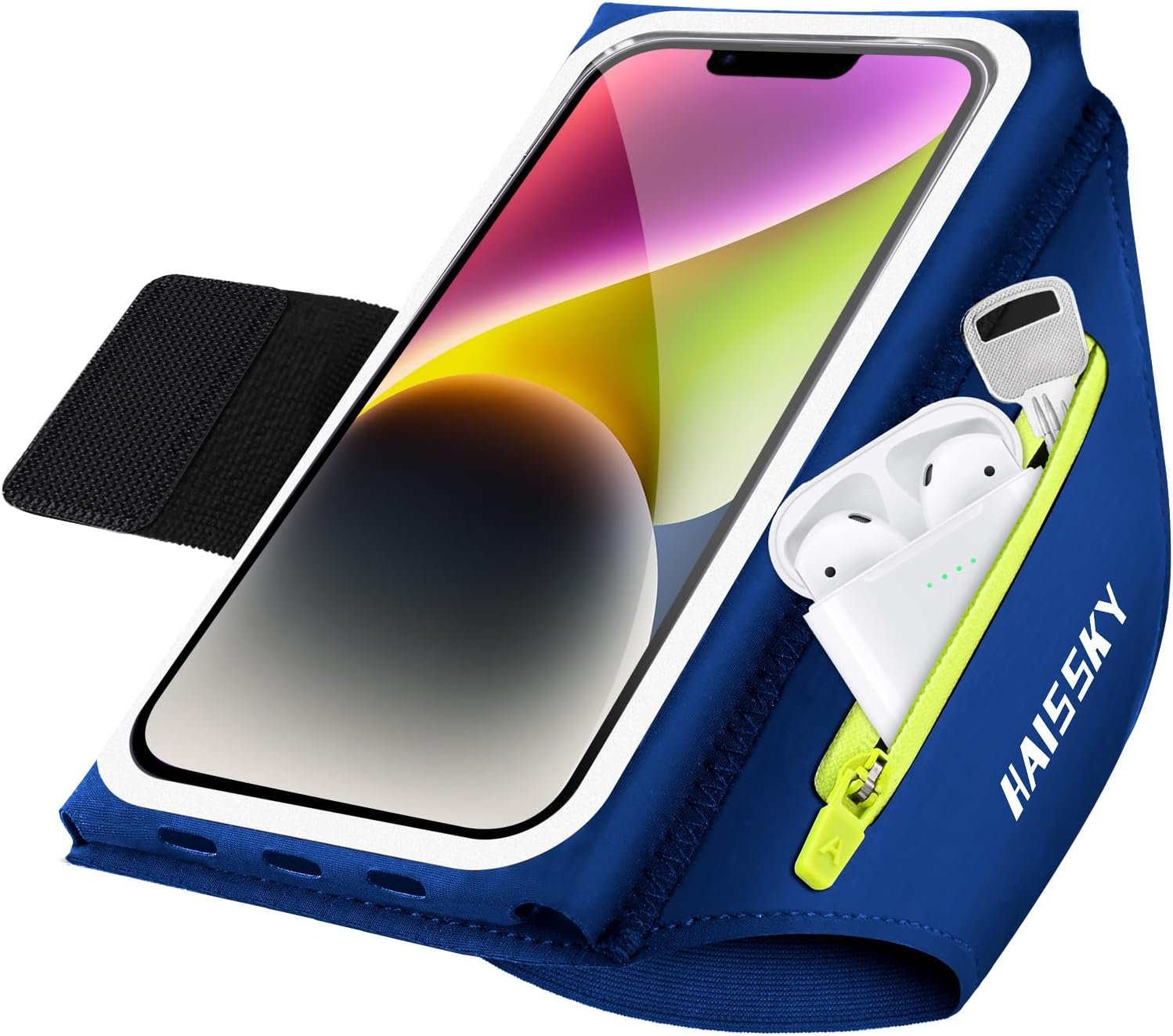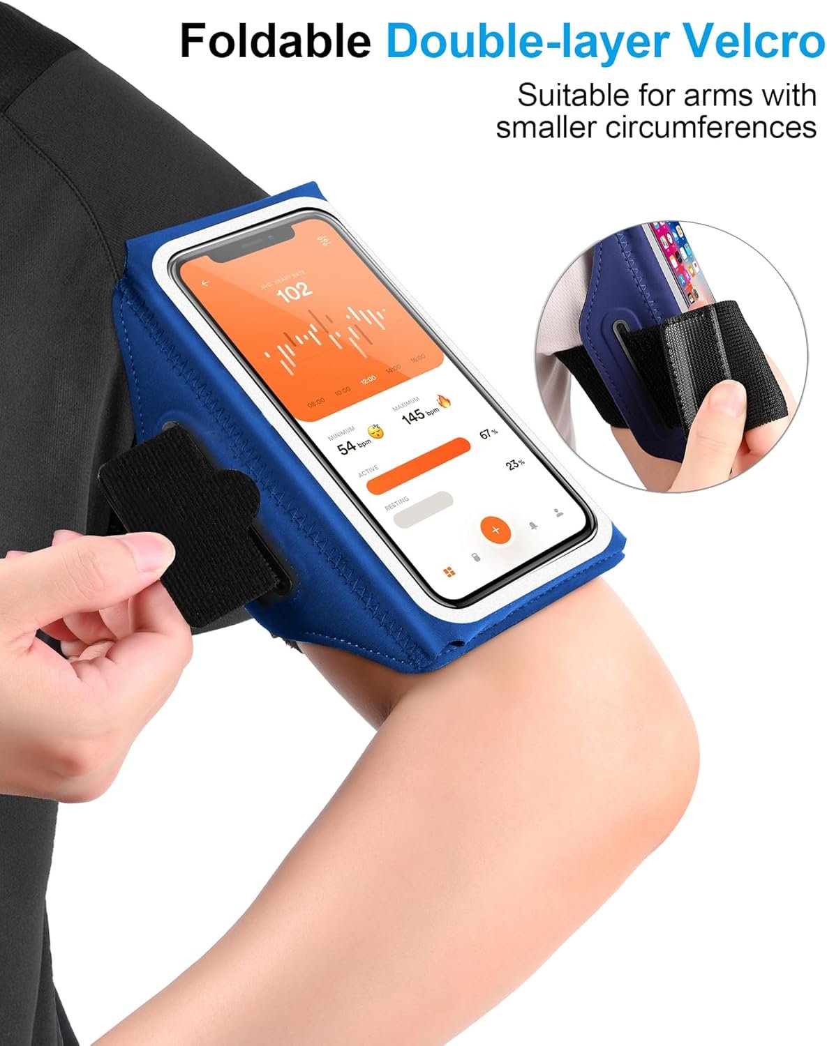 Foldable elastic strap: mobile phone case jogging upgrade to double-sided closure for strong adhesion and foldable design. Suitable for arms with 23-40 cm circumference (9-16 inches).