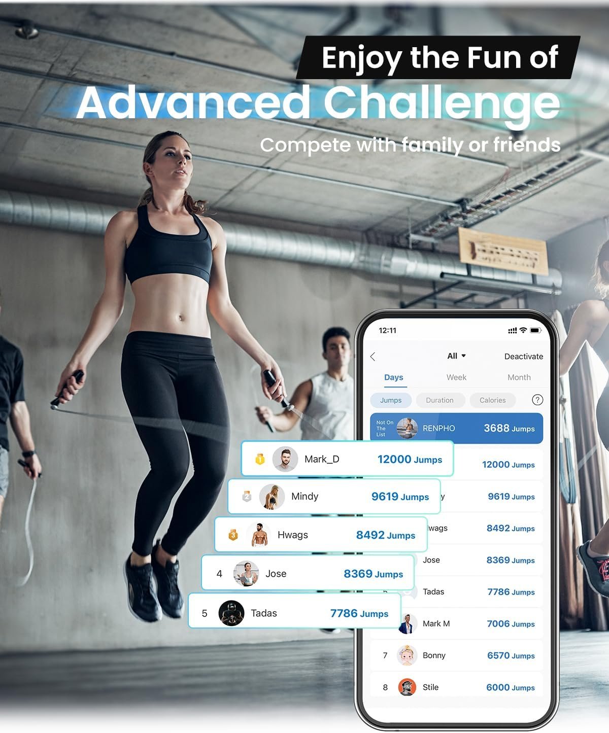 RENPHO Smart Skipping Rope with Counter Skipping Rope Adjustable App Analysis Data Skipping Rope Fitness Men Women Kids Crossfit Training Equipment