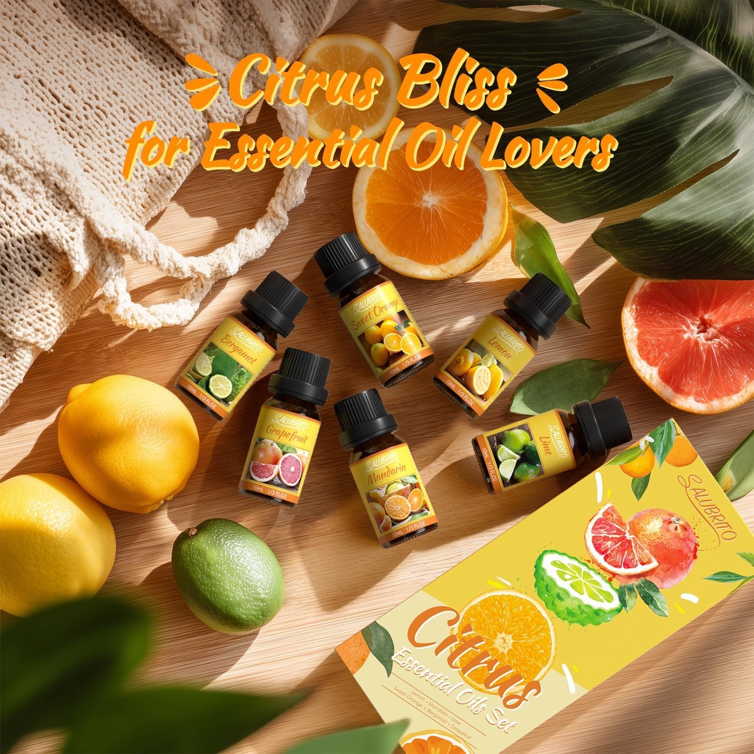 SALUBRITO Citrus Essential Oils Set, Natural Citrus Fragrances Fragrance Oils for Diffuser – Sweet Orange, Bergamot, Grapefruit, Lemon, Mandarin, Lime Aromatherapy Oil