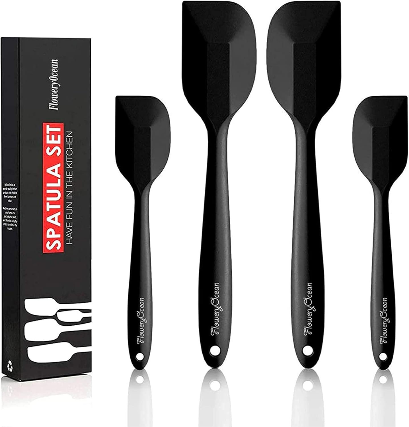 Silicone Spatula Set Heat-Resistant, BPA-Free, Non-Stick with Stainless Steel Core and Seamless One-Piece Design – Black or Red – Set of 4