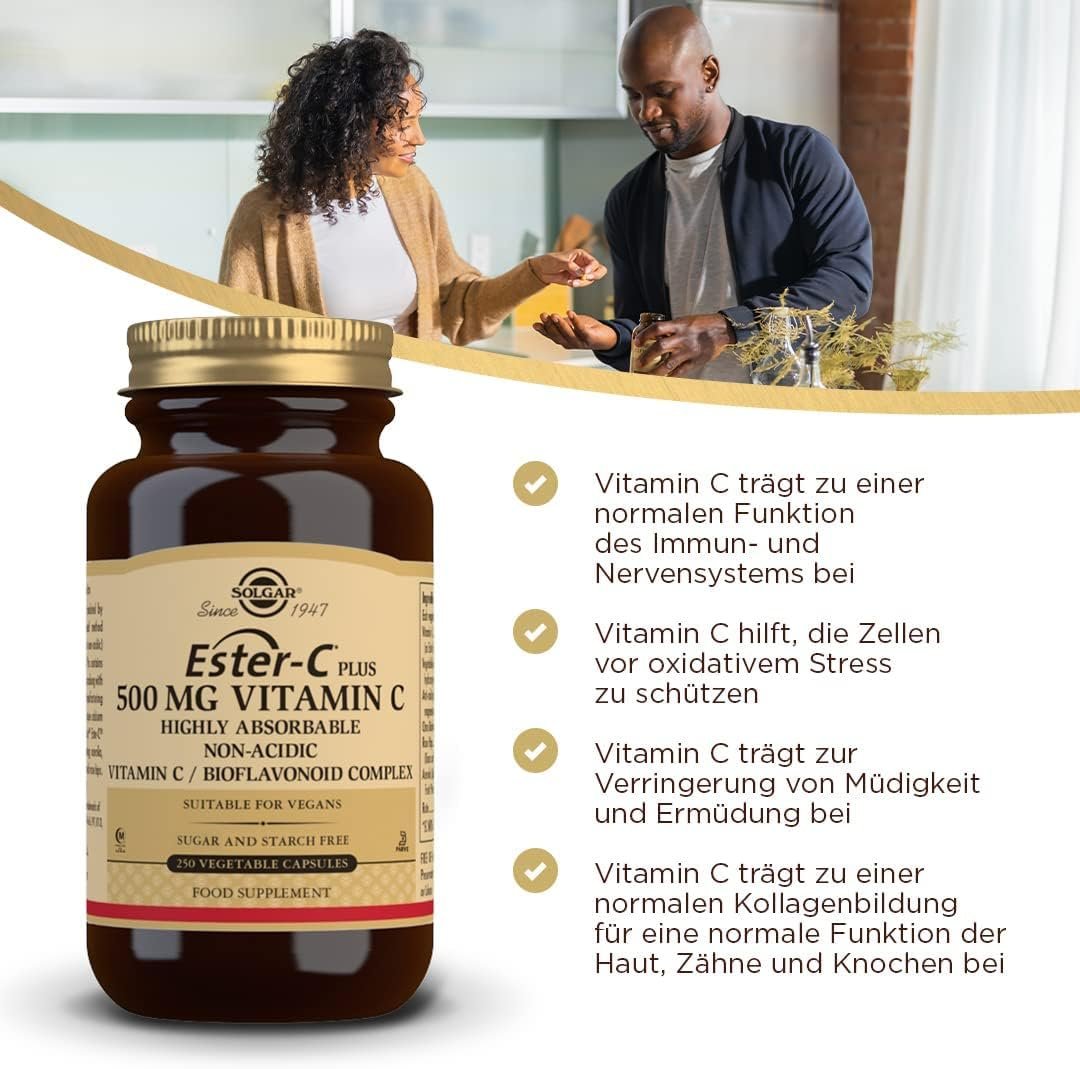 SOLGAR Ester-C Plus (500 mg) | Vitamin C Complex with Patented Ester-C, Bioflavonoids, Acerola, Rosehip and Rutin | 250 Vegan Tablets