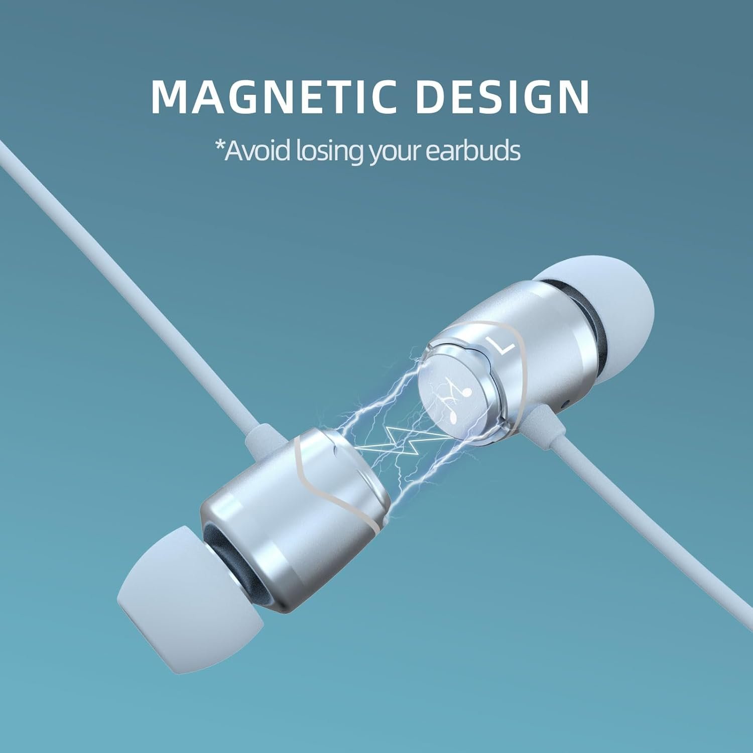 Comfortable and durable: skin-friendly neckband for comfortable wearing. Machine-made full aluminium housing for a longer service life. Thanks to the magnets built into the headphones, the headphones connect when not in use, so they can be worn comfortably like a necklace and do not tangle.