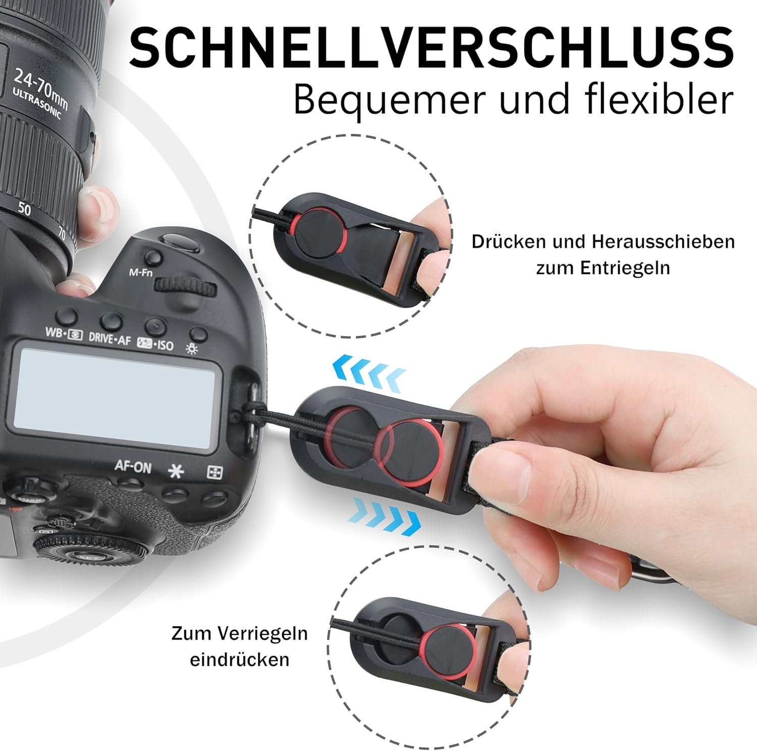 Compatibility: the Sunya camera hand strap is equipped with a quick release mechanism and is compatible with a variety of camera types and sizes. Even cameras of the EOS R and A7M class or entry-level microsimilars can be equipped with the Sunya Camera Hand Strap.