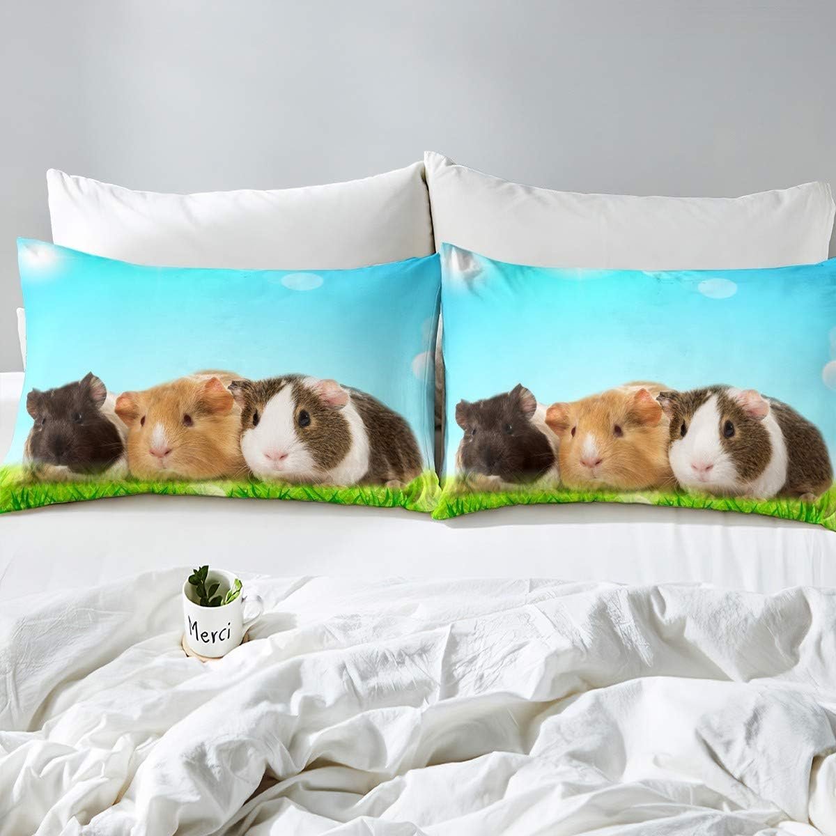 Tbrand Girls’ Guinea Pig Duvet Cover Set, Cute Cavy Bedding Set, 135 x 200 cm, for Children, Boys, Grassland, Beautiful Pets, Animal Decor, Bed Set, Natural, Blue, Green, Microfibre with 1 Pillowcase