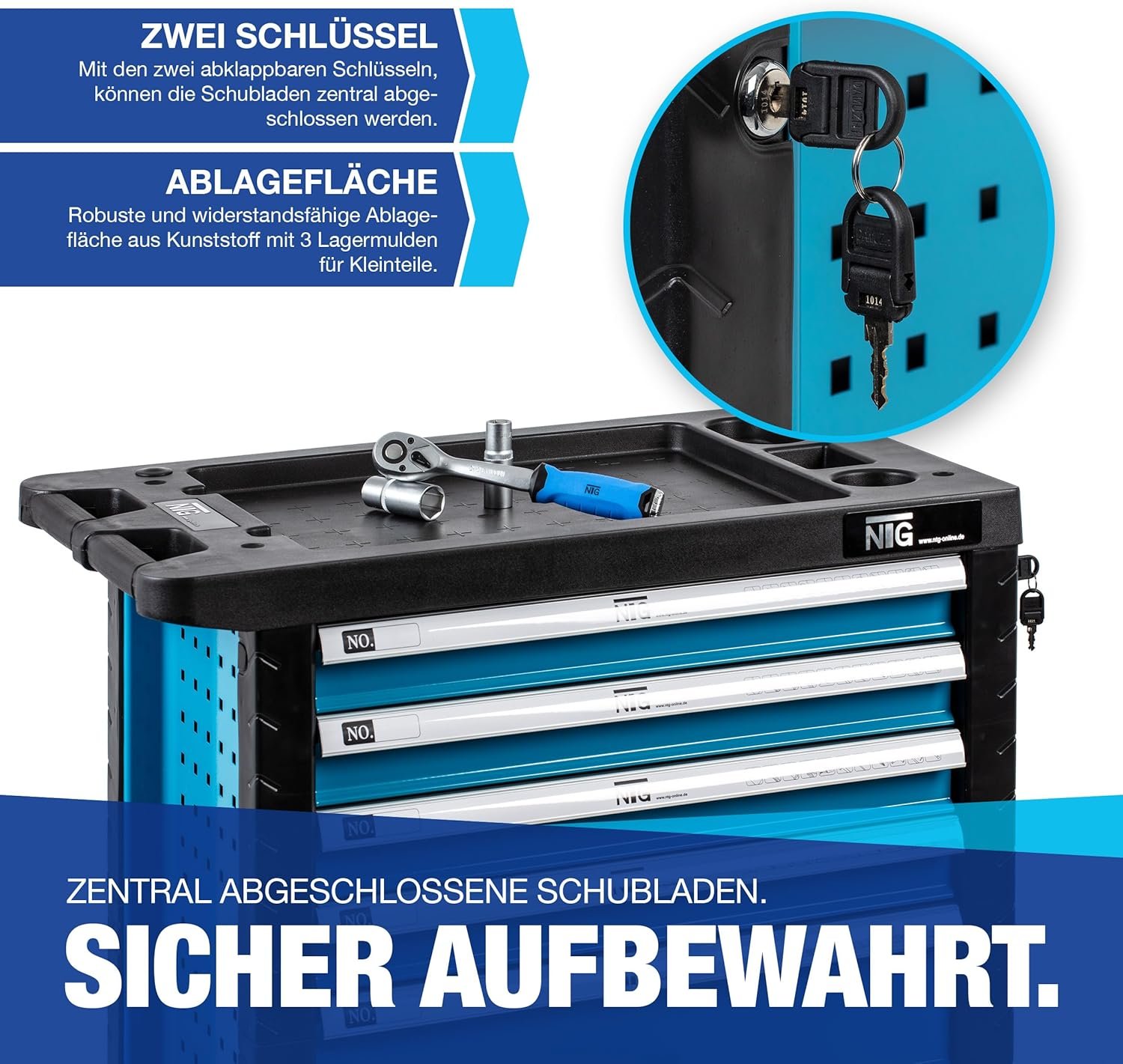 LOCKABLE & SECURE The tool cart is lockable, which ensures the safety of your tools. You can safely store your tool kit when not in use.
