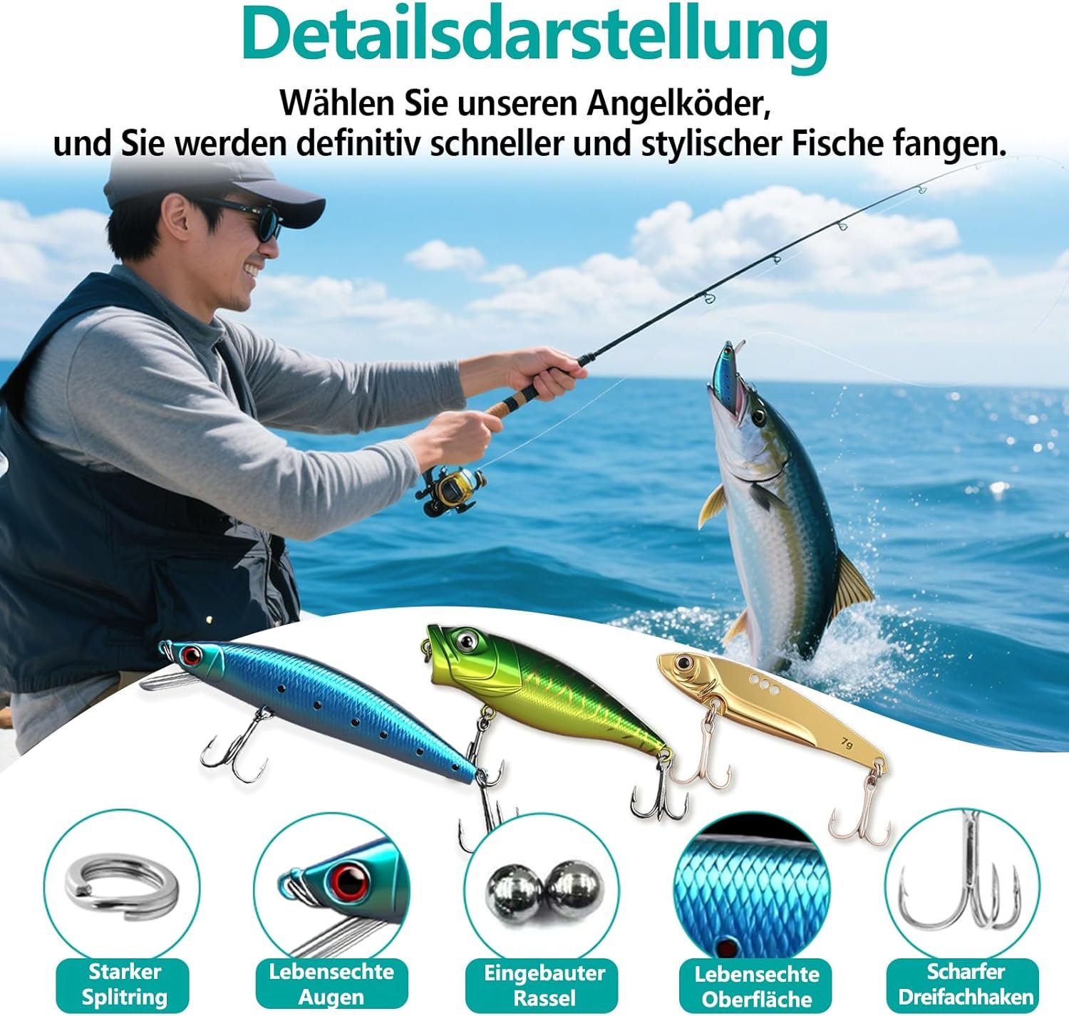 The ideal gift for any angler: Are you looking for a gift that is guaranteed to inspire? This complete fishing lure set is the perfect surprise for fathers, husbands, friends and all fishing enthusiasts – whether a beginner or experienced professional. Ideal for birthdays, Christmas or as starting gear for new hobby anglers.