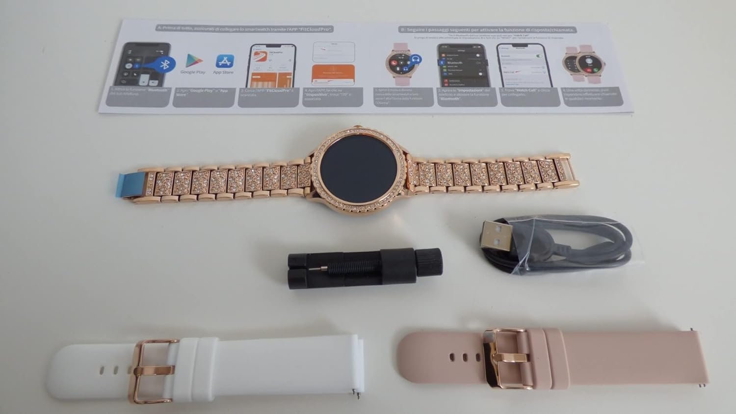 [Notes]:— To extend the life of the battery, make sure you fully charge the smart watch for iPhone compatibility when you use it for the first time. fitonyo women’s elegant fitness watch you will receive: 1 x Bluetooth watch, 3 x watch straps (golden stainless steel strap + pink + white silicone strap), 1 x USB magnetic charging cable, 1 x user manual (English language not guaranteed), 1 x connection manual.